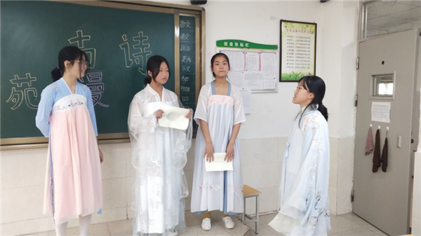 据了解,从选取题材、搜集资料,到自编剧本、排练表演,都是学生们充分发挥创造力,将千古佳话生动地呈现在课堂上。《七步诗》中曹植的愤懑无奈,《渔父》中屈原的爱国情怀,陆游与唐婉凄美的爱情故事和流传千古的《钗头凤》……表演形式不仅有话剧,还有配乐诗朗诵、舞蹈、书画等,从不同侧面表现出同学们对古诗词的理解。